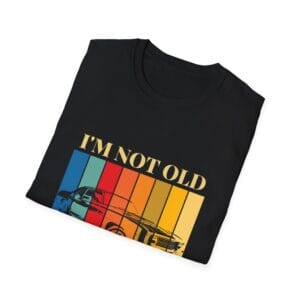Vintage design Unisex T-shirt, perfect for vintage car lovers with the text ‘I am not old, I am classic’. This shirt gives off a retro and nostalgic vibe, ideal for casual wear or as a statement piece. It is relevant for classic car enthusiasts and those who appreciate vintage aesthetics. Great for birthdays, car shows, Father’s Day, and casual outings.